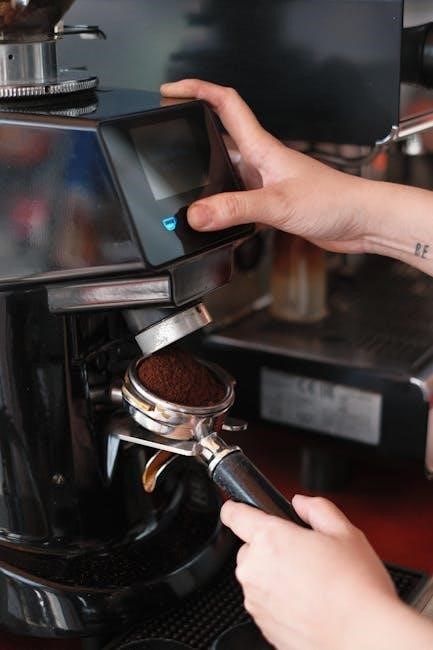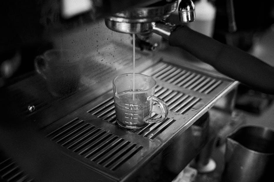 Key components include a stainless-steel finish and a user-friendly control panel. The downloadable manual provides detailed instructions on operating the machine, including brewing espresso and steaming milk. Users will find guidance on utilizing the portafilter and understanding the machine’s specifications. Troubleshooting tips are also included to address common issues. Accessing the EM-100 manual empowers users to fully understand and maintain their espresso maker, resulting in consistently delicious results.